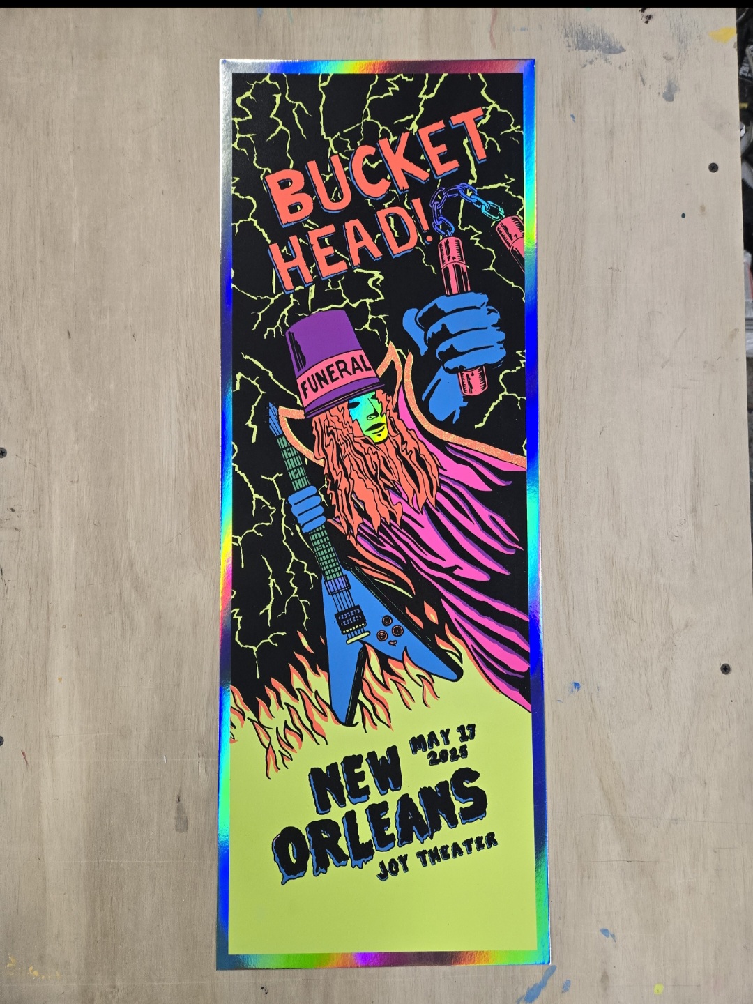 Official show poster for Buckethead at the Joy Theater in New Orleans, LO on May 17, 2025. The production run was 70 regular and 25 foils.